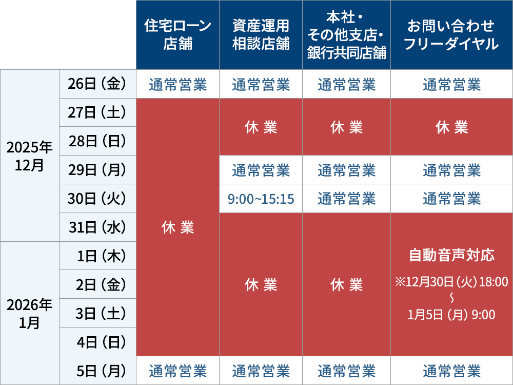 SBIマネープラザ株式会社では誠に勝手ながら、年末年始休業について下記のとおりとさせていただきます。